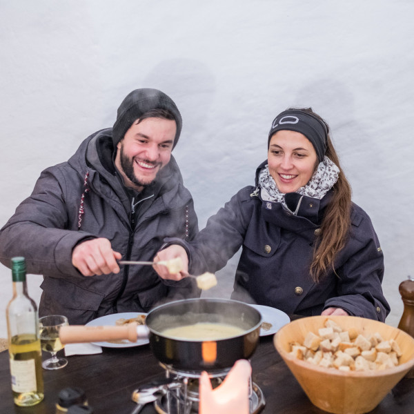 Experience the coolest atmosphere in Kühtai in the Iglu-Dorf. During the day, you can expect a small selection of hot and cold drinks, various snacks and fondue. In the evening we serve you a Swiss cheese fondue in a unique igloo setting.